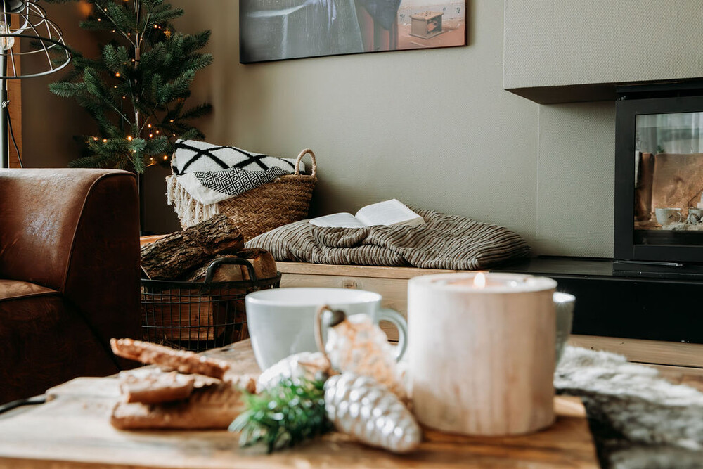 • Ruime zithoek rondom HOUTKACHEL, eethoek met houten kloostertafels. SMART TV